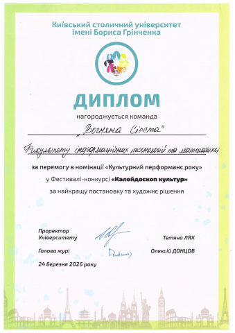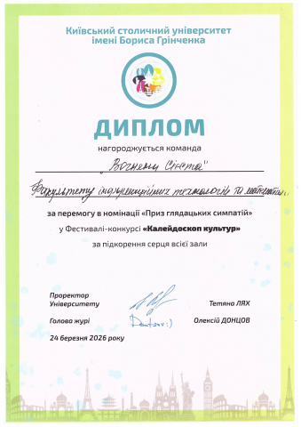 24 березня 2026 року в Київському столичному університеті імені Бориса Грінченка відбувся загальноуніверситетський Фестиваль-конкурс «Калейдоскоп культур». Цьогорічна концепція заходу передбачала презентацію обраної країни у форматі масштабного тематичного фестивалю. Факультет інформаційних технологій та математики представляв на конкурсі Іспанію.