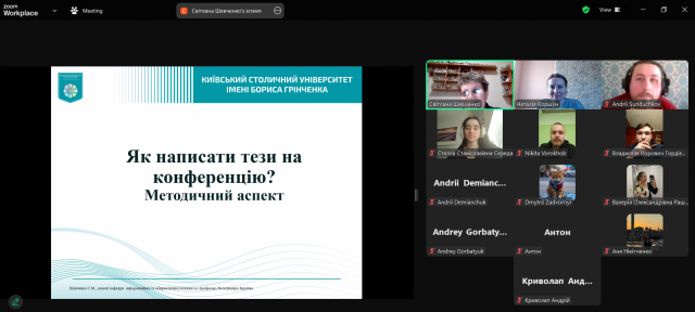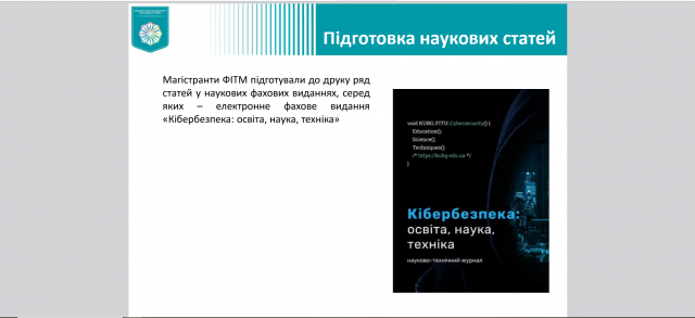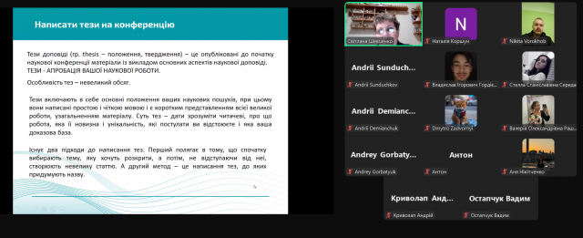 26 березня 2025 року відбувся науковий семінар для членів Наукового товариства ФІТМ, підготований кафедрою інформаційної та кібернетичної безпеки імені професора Володимира Бурячка, на тему «Як написати тези на конференцію? Методичний аспект». Захід було спрямовано на формування в студентів практичних навичок підготовки наукових тез до участі у фахових конференціях. Спікерка, к.п.н., доц., доцент кафедри інформаційної та кібернетичної безпеки імені професора Володимира Бурячка Світлана Миколаївна Шевченко надала учасникам рекомендації щодо висвітлення результатів власних наукових пошуків на різноманітних наукових заходах. У межах семінару було розглянуто основні етапи написання тез: вибір актуальної теми, постановка мети дослідження, логіка побудови змісту, формулювання висновків, а також вимоги до оформлення. Окрему увагу було приділено аналізу поширених помилок та рекомендаціям щодо покращення стилістики та наукової мови викладення матеріалу. Дякуємо Світлані Миколаївні за професійний підхід і змістовне висвітлення важливої теми, а студентам — за активну участь.