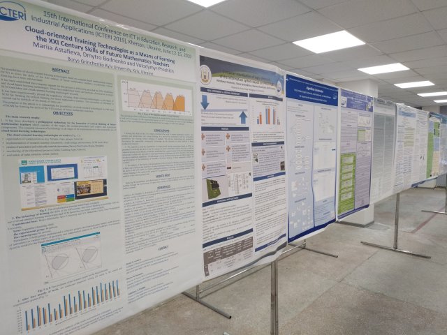 12 – 15 червня 2019 р. на базі Херсонського державного університету проходила ХV Міжнародна науково-практична конференція «Інформаційно-комунікаційні технології в освіті, дослідженнях та індустріальних додатках – ICTERI 2019». Наш Факультет представляли викладачі кафедри комп’ютерних наук і математики: В.В. Прошкін, доктор педагогічних наук, професор кафедри КНіМ, М.М. Астаф’єва, кандидат фізико-математичних наук, доцент кафедри КНіМ і Д.М. Бодненко, кандидат педагогічних наук, доцент кафедри КНіМ.