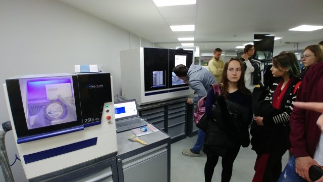 Студенти спостерігали роботу найсучаснішого обладнання: потужних німецьких фрезерів Imes-Icore, зуботехнічних 3D сканерів Medit, технологію лазерного спікання деталей з кобальт-хрому на машині Sisma та 3D друк з різних матеріалів на принтерах Rapidshape і Formlabs.