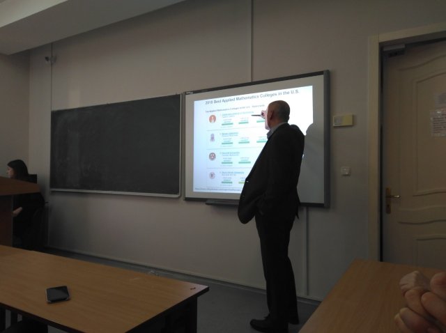 Окрім того Самуляк Роман ознайомив студентів-математиків з умовами грантових програм магістерського курсу, постмагістерського (PhD) та запросив наших випускників на навчання в Stony Brooc University, зауваживши, що гарні знання математики в поєднанні зі знаннями англійської мови відкривають широкі можливості як в Україні, так і за кордоном.