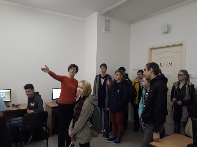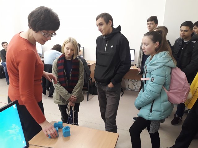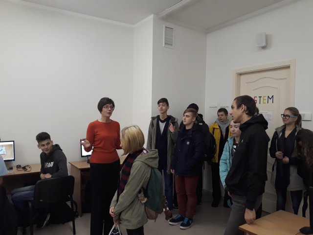 Підчас візиту завідувач кафедри інформаційних технологій і математичних дисциплін Литвин О.С. розповіла про розвиток сучасних інформаційних технологій та математичних методів в різних галузях, про нову стратегію нашого Університету в під готовці сучасного фахівця та про спеціальності за якими факультет здійснює підготовку. Аспірант Білоус В.В. продемонтсрував проекти, виконані на базі лабораторії вбудованих систем та роботу обладання в ній, зокрема 3Д принтера. Зі старшим викладачем кафедри Співак С.М. учні створили тривимірну графічну модель сніговика.