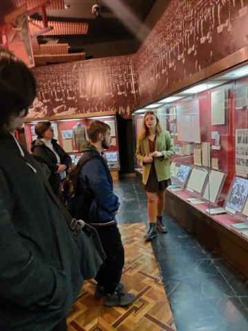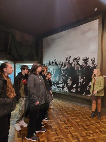 Під час візиту студенти ознайомилися зі стаціонарною експозицією музею «Капсула часу», яка розповідає про події напередодні та впродовж Другої світової війни на території України. Сім тематичних залів, об’єднані інсталяцією «Дорога війни», проводять відвідувачів крізь історію найбільшого збройного конфлікту ХХ століття – від 1933 року до повної окупації України, демонструючи події у хронологічній послідовності. Завершується експозиція Залом пам’яті – символічним простором, де вшановують усіх загиблих, як військових, так і мирних жителів.