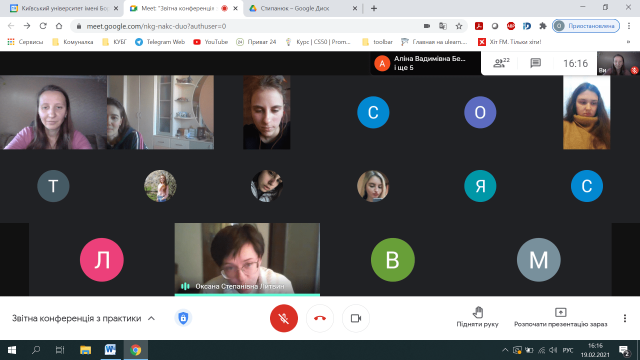 Модераторами зустрічі виступили керівники практики доценти кафедри комп’ютерних наук і математики Глушак О.М. та Семеняка С.О. Долучилися до процесу завідувачка кафедри комп’ютерних наук і математики Литвин О.С. та старший викладач Скоробрещук Г.М.