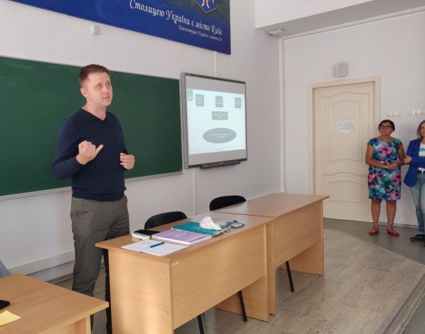 Далі викладачі кафедри: Абрамов В.О., Іваніченко Є.В., Прошкін В.В. і Радченко С.П. представили студентам інформацію про напрями роботи наукових гуртків: «Математичні студії», «Використання ІКТ в освітньому процесі», «Комп’ютерні системи», «Проєктування та створення систем безпеки».