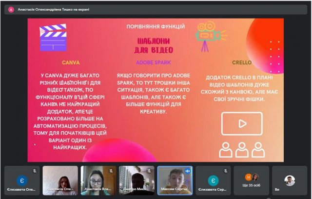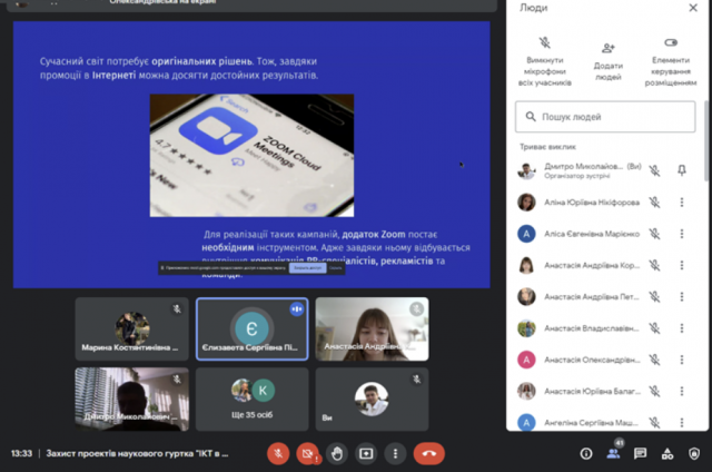 23 грудня 2021 року в рамках роботи студентського наукового гуртка «Використання ІКТ в освітньому процесі» (керівник Бодненко Д.М., співкерівник: Кучаковська Г.A.), відбувся захист проектів студентів університету.