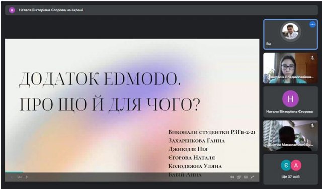 В ході підготовки проектів студенти досліджували хмарні сервіси (Google Земля, Edmodo, Classroom, Canva, Gimp online, Adobe Spark for Education, Zoom, Pinterest та Discord), їх особливості і специфіку використання. Отримані результати студенти представили у вигляді електронно-методичних матеріалів з теми в LMS MOODLE. Під час захисту студентами розкрито результати науково-дослідної роботи з виникнення, розробки, теоретичного і практичного використання зазначених сервісів в професійній діяльності. Студенти мали змогу не тільки презентувати свої проекти, але й оцінювати одне одного за визначеними критеріями. У захисті прийняли участь 5 команд, в кожній з яких були доповідачі теоретичної частини дослідження та практики використання заявлених сервісів для наукових задач різного типу. Учасники проектів висловлювали свої власні зауваження щодо проектів конкурентів, об’єктивну критику та побажання.