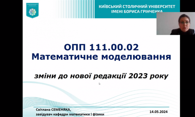 Семеняка С. ознайомила учасників засідання Ради роботодавців із запропонованими змінами до освітньої програми «Математичне моделювання», які зумовлені відгуками викладачів, здобувачів освіти спеціальності та враховують рекомендації, отримані під час акредитації програми.
