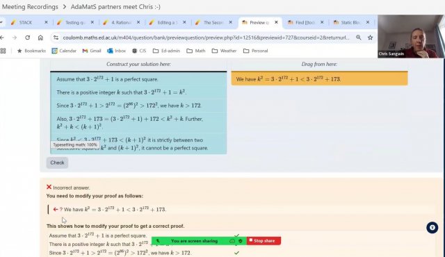 Професор Сангвін детально презентував можливості системи STACK, яка дозволяє створювати математичні завдання з автоматичною перевіркою розв’язків. Він наголосив, що використання цієї платформи значно підвищує ефективність викладання та забезпечує об’єктивність оцінювання студентів. Як приклад, було розглянуто успішне впровадження STACK у рамках проєкту AuthOMath (AuthOMath Project). Основну увагу учасники вебінару приділили обговоренню викликів дистанційної освіти та перспектив створення інноваційного навчального контенту європейського рівня.