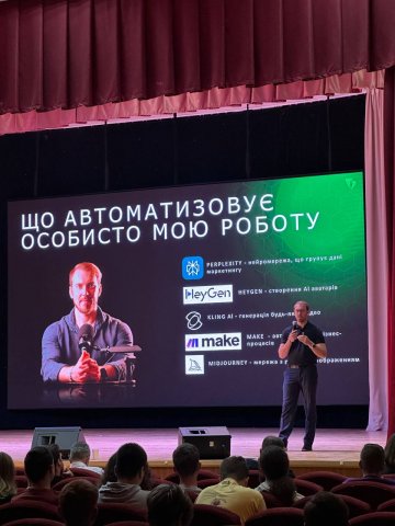 Під час виступу спікер окреслив ключові напрями впливу ШІ на сучасні процеси: автоматизацію рутинних завдань, трансформацію освіти, маркетингу, продажів та управління. Він наголосив, що розуміння принципів роботи штучного інтелекту стає однією з базових компетентностей майбутніх інженерів і ІТ-фахівців. Окремо було розглянуто реальні кейси з українського та міжнародного бізнесу й можливості, які відкриваються перед молодими спеціалістами.