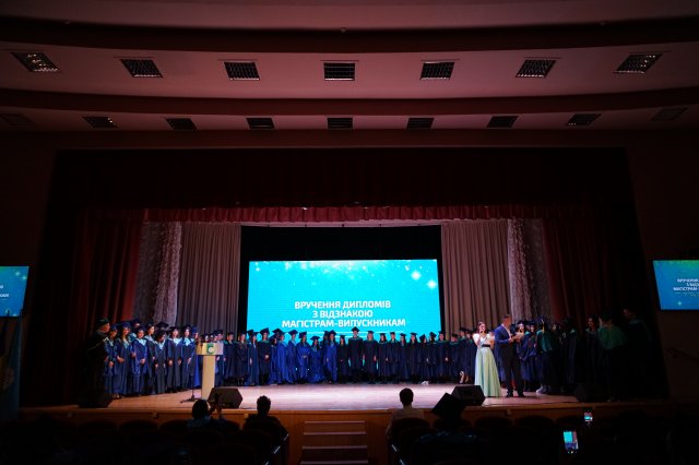 Зі словами напуття до магістрів звернувся виконуючий обов’язки ректора, заслужений працівник освіти України Олександр Турунцев. Він разом із проректором з науково-педагогічної та навчальної роботи Олексієм Жильцовим вручив дипломи з відзнакою кращим випускникам, які продемонстрували високі академічні та наукові результати.