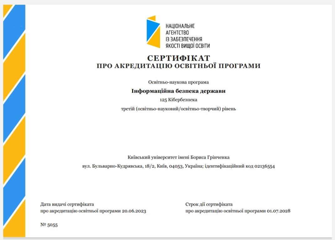 - Освітня програма зі спеціальності F5 «Кібербезпека та захист інформації» (вступ 2025)