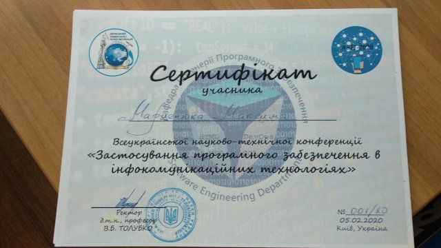5.02.2020 року на факультеті Інформаційних технологій в Державному університеті телекомунікацій відбулася Всеукраїнська науково-технічна конференція «Застосування програмного забезпечення в інфокомунікаційних технологіях», одним із напрямків якого був «Безпека програм та даних в інфокомунікаційних технологіях».