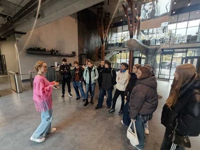 Ця екскурсія стала цінною можливістю для майбутніх фахівців побачити зсередини роботу світового лідера у сфері розробки програмного забезпечення. Студентів та викладачів тепло зустріла та провела захопливу екскурсію Вікторія Шевлюк. Студентам не тільки розповіли про реальні проєкти, над якими працюють фахівці SoftServe, та найсучасніші технології, що використовуються в розробках, а й познайомили із корпоративною культурою та внутрішнім життям компанії.