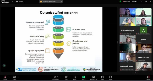 Перша зустріч дала змогу учасникам познайомитися, сформувати міжінституційні команди та визначити свої ролі у спільній роботі. Це стало важливим кроком до ефективної співпраці, обміну знаннями та набуття практичного досвіду в галузі математичного моделювання та штучного інтелекту.